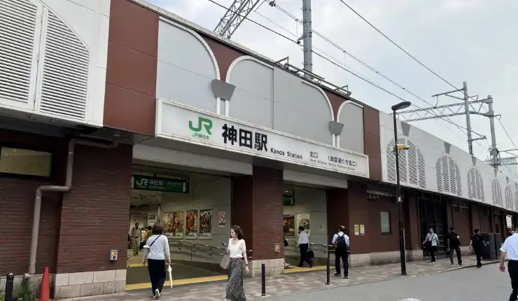 JR神田駅北口を出てすぐ、ファミリーマートの右側にある地下へ降りる階段をご利用ください。